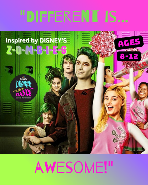 Explore fun-filled drama inspired by Disney's hit show Z-O-M-B-I-E-S! Enjoy acting, comedy, dance, & singing.